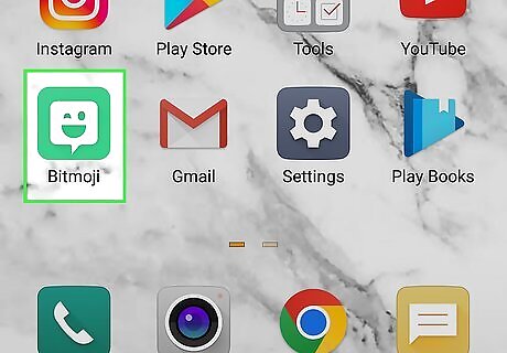 Open Bitmoji. It’s the green icon with a white winking chat bubble in the app drawer. There’s no real way to copy a Bitmoji from the Android app, but you can save it to your device to share with other apps.
