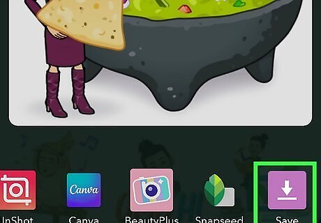 Swipe left across the bottom icons and tap Save. It’s the last option (a purple icon with an arrow) in the icon list.