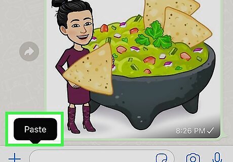 Paste your copied Bitmoji into an app. Tap and hold the text box where you want to paste it, then select Paste. As long as the app supports copying and pasting, your Bitmoji should appear. Most social apps like Facebook, WhatsApp, and Twitter allow you to paste your Bitmoji directly into a new message or post.
