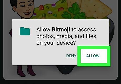 Tap Allow. Do this if you’re asked to allow Bitmoji to access photos, media, and files on your device. The Bitmoji will now save to a folder called “Bitmoji” on your device.