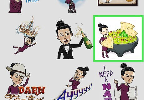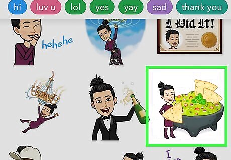 Tap the Bitmoji you want to save. To find it, use the icons at the top of the screen to view different categories, then scroll down to see all of the options.