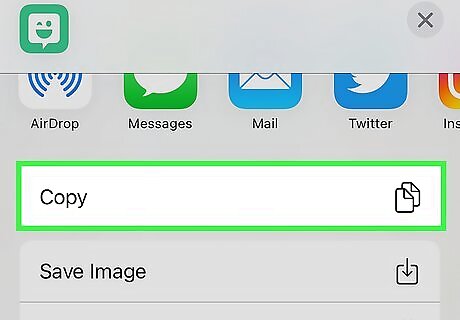 Tap Copy. It’s the third icon from the left on the second row of icons. This copies the image to your device’s clipboard.