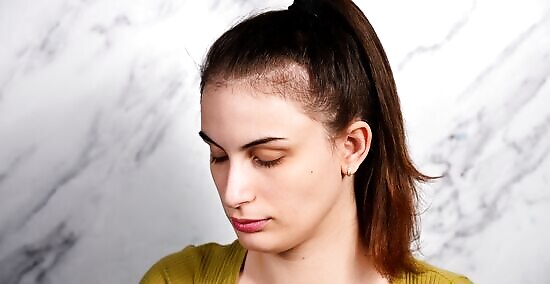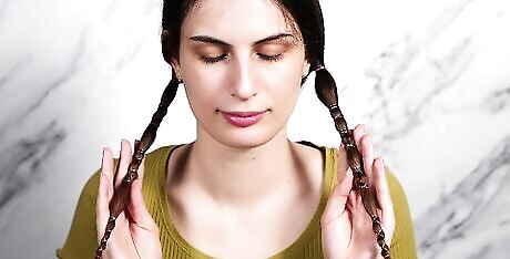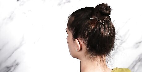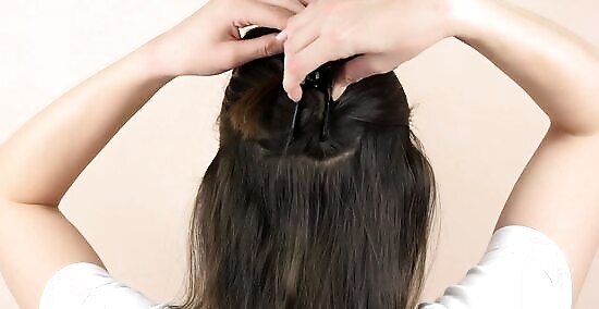 Divide the crown sections of your hair on either side. Use both hands to pull sections on either side of your crown back by making a circle as you move the hair back. Bring the 2 sides together and hold the hair from the crown. Secure the hair with a slip. For thicker hair, pick up a bigger crown section of hair.