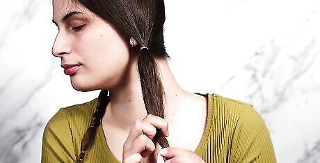 Bend forward and gather damp or dry hair into a ponytail and secure it with an elastic band. The height of your ponytail may depend on your hair length or how much of your hair you’re looking to smooth out. Twisting the hair into a bun can temporarily straighten or smooth your hair and can help maintain a straightened look for those with hair that is somewhat straight or slightly wavy.