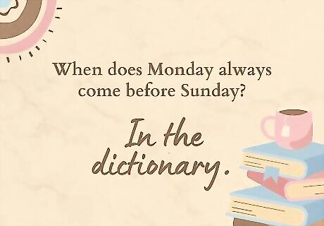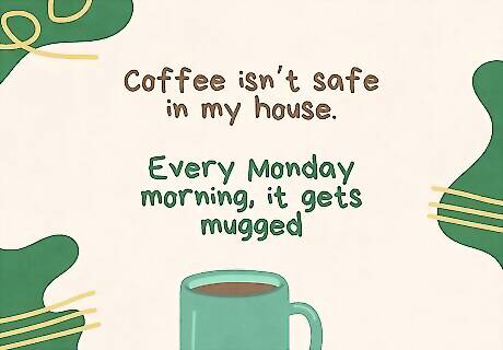 Catch people off guard with a witty one-liner. Garavito says it’s important to tailor your one-liner to your setting and audience: “In conversation, don’t deliver it like a punchline—share it like a thought. People can tell when it’s forced.” Casually dropping a one-liner is a great way to make your friends, coworkers, or classmates laugh on a Monday morning. Here are some examples: I couldn’t decide if I should get out of bed Monday morning, so I decided to sleep on it. I made a huge to-do list for this Monday. Now I just need to find someone to do it. I can’t make it to work on Monday because I have a vision problem. I can’t see myself coming in. Coffee isn’t safe in my house. Every Monday morning, it gets mugged. A case of the Mondays? I don’t even want a bottle of the Mondays! Monday is the only day of the week with its own theme song: the sound of your alarm clock mixed with your soul leaving your body. They say Monday is a fresh start, which is technically true. It’s a fresh start counting down to Friday. Monday morning coffee isn’t a beverage. It’s a life support system with cream and sugar. I’m so good at sleeping through my Monday morning alarm, I can do it with my eyes closed. After Monday and Tuesday, even the calendar says WTF. It’s all fun and games until Monday rolls around and you have to put a bra back on. One day on Venus lasts 5,832 hours. The same as one Monday on Earth. Monday is like a math problem. Add the irritation, subtract the sleep, multiply the problems, divide the happiness. If you ever see me smiling on a Monday, know that an alien has killed me and is wearing my skin as a disguise. Rolling out of bed on Monday morning is easy. Getting up off the floor is another story. Everyone has their favorite villain. Monday is mine. The only thing worse than Friday the 13th is Monday the 13th. A much spookier day. Work is usually easy, but once in a while, it gives me a run for my Monday. I thought about wishing you a happy Monday, but that’s like saying “Enjoy your root canal.” I like Tuesday. It’s the furthest from next Monday as it can possibly be.