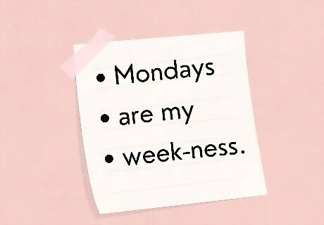 Tell a cheesy pun to make people roll their eyes. Puns—you either love them or you hate them. Try casually working a pun into your conversation to see how many people groan or roll their eyes, or find an opportunity to make a punny joke. After all, Garavito says wordplay is the hallmark of a good dad joke. Here are some examples: I tried to make a pun about Monday, but it was pretty week. Another moan-day morning! Words cannot espresso how much coffee means to me on a Monday morning. Mondays are my week-ness. I’m done-day before Monday even starts. Just take it Mon-day at a time. What’s the best way to describe a Monday? Monday-ne (mundane). What’s the best time to get a discount on robotic parts? Cyborn Monday. Which day of the week are demons most tired? De-Monday. If every day is a gift, I want to know where I can return Mondays. How do chickens feel on Mondays? Eggshausted. Why did Boba Fett sleep Tuesday through Sunday? He was a Mondaylorian. Which day of the week makes werewolves howl? Moonday.