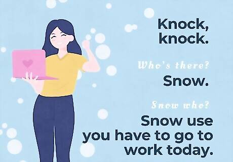 Have fun with a silly knock-knock joke. In general, knock-knock jokes are targeted at kids, but adults can enjoy them, too! A little wordplay can go a long way in brightening someone’s day on a dull Monday morning. Here are some examples: Knock, knock. Who’s there? Monday. GO AWAY. Knock, knock. Who’s there? Howard. Howard who? Howard you feel if you had to work today? Knock, knock. Who’s there? Donut. Donut who? Donut you dare hit the snooze button again. Knock, knock. Who’s there? Bean. Bean who? Bean awake for five minutes and I already need coffee. Knock, knock. Who’s there? Dewey. Dewey who? Dewey really have to go to work today? Knock, knock. Who’s there? Muffin. Muffin who? Muffin prepared me to face Monday. Knock, knock. Who’s there? Needle. Needle who? Needle little help to get through Monday. Knock, knock. Who’s there? Butter. Butter who? Butter get out of bed. Knock, knock. Who’s there? Justin. Justin who? Justin time for work if you hurry! Knock, knock. Who’s there? Anita. Anita who? Anita big cup of coffee right now. Knock, knock. Who’s there? Watt. Watt who? Watt do you mean it’s Monday? Knock, knock. Who’s there? Snow. Snow who? Snow use—you have to go to work today. Knock, knock. Who’s there? Terry. Terry who? Terrified of my inbox right now. Knock, knock. Who’s there? Weekend. Weekend who? Weekend believe it’s Monday either. Knock, knock. Who’s there? Heymon. Heymon who? Heymonday is here already!