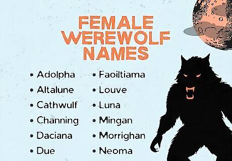 Draw inspiration from your werewolf’s human and animal sides. In general, werewolves are humans who transform into wolves or wolf-like creatures, but the way you name your werewolf will depend on your werewolf’s origin story. If they began as a normal human, they’re more likely to have a common name. If they were born into a race of werewolves, however, their name may reflect more of their wolf-like qualities. If you prefer, try to strike a balance between both aspects. Similarly, decide how on-the-nose you want your werewolf’s name to be. If everyone knows they’re a werewolf, give them a typical werewolf name. If you want their identity to be a surprise, go for something that isn’t directly related to wolves or werewolves.