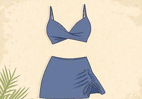Skirt A swim skirt combines a traditional bikini bottom with an overlaid mini skirt. This offers a bit of extra coverage and security, while looking chic and fashionable. Skirted swimsuit bottoms also come in a variety of styles, from sleek and athletic options to ruffled, feminine styles.
