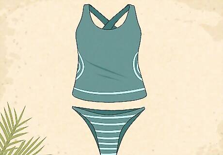 Consider how much coverage you want on your top and bottom. “Think about how much coverage you want on your bikini,” says personal stylist Neepa Sikdar. “So, if you’re looking for tops, there’s the bandeau or string bikini for lower coverage, and the tankini or sports bra for higher coverage." Sikdar recommends looking at bottoms next. If you want a little more coverage, try a high-waisted or boyshort style.