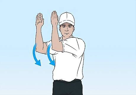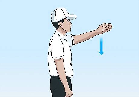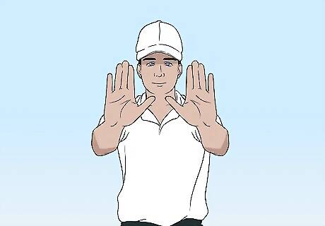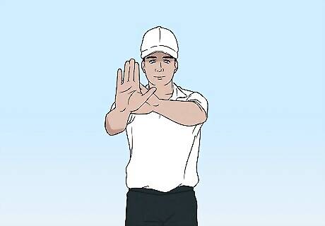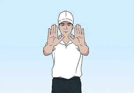 Sideline warning The referee holds both arms out to their side, parallel to the ground. Then, they slowly move their arms towards the sideline like they’re trying to say “back up.” What it means: This is a pretty rare signal. Refs use it to basically warn a team that they need to back up or stop interfering with play.