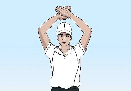 Time stops The referee raises their arms above their head and crosses their hands and arms back and forth like they’re trying to wave someone down. It’s accompanied by a whistle-blow. What it means: The clock stops.