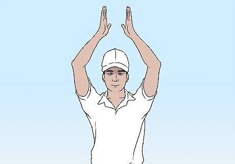 Close to 1st down, but not a first down The referee holds both hands up in the air over their head and puts their palms straight up, leaving a gap between their hands. What it means: The refs are signaling that the ball is close to being over the first down line, but it isn’t quite there.