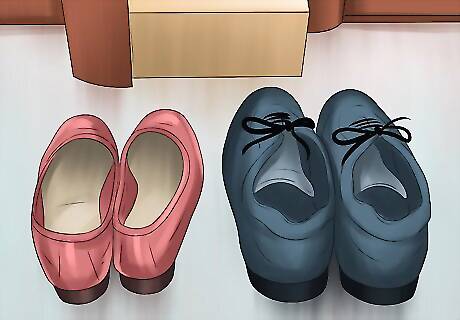 Remove your shoes, if appropriate. People tower over cats, and sometimes a cat may get underfoot by accident. If appropriate, remove your shoes so you don't risk stepping on the cat's tail. Some shoes, particularly high heels, make loud sounds when you walk. Removing them will also help keep the environment quiet and stress-free for the cat.
