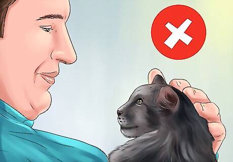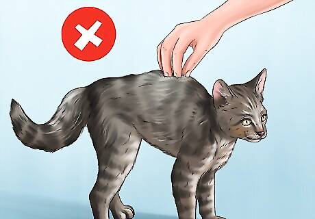 Avoid petting a cat if its tail is fluffed and straight up. When cats feel intimidated, they fluff up their fur so they seem larger than they actually are to potential challengers. They may even put their tails straight up. These actions mean the cat's fight-or-flight response is engaged. Don't try to touch or approach a cat if they are exhibiting this behavior, as they may bite or scratch you.