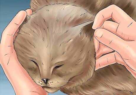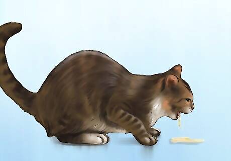 Recognize signs of distress or Illness. When cats are sick they will cough, sneeze and may vomit, just like us. If the cat is exhibiting these signs and seems to be hiding in a small space, they may be sick. If the owner is available, let them know so they can contact a veterinarian. Do not attempt to pet this cat. If the cat is a stray, and you are concerned for its wellbeing, contact a local rescue group. They can give your further instruction on how to proceed. Do not try to pick up or pet the cat, as you may put yourself at risk of rabies or a bite.