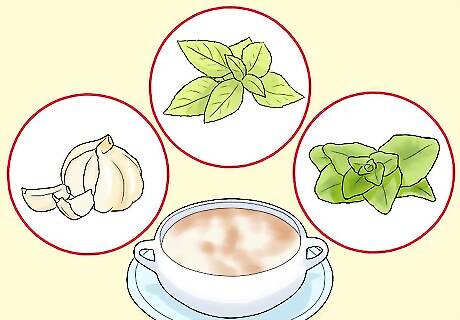 Season your meals with calcium-rich herbs and spices. There are many spices that are good sources of calcium. Although you probably won't use a significant amount, a dash of calcium-rich herbs and spices such as garlic, basil, and oregano can give you a small calcium boost. Garlic and oregano are common herbs used in Italian sauces. Basil, thyme, rosemary, and parsley also are rich in calcium. Cinnamon is a good source of calcium as well as helping you lose weight by preventing increased storage of fat. Sprinkle cinnamon onto your breakfast cereal, or add it to your tea for a calcium boost. One tablespoon of cinnamon has 8% of your daily value of calcium.