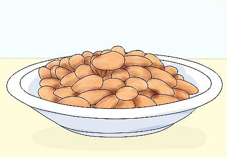 Snack on almonds. Almonds have more calcium than any other nut, and are a good snack when you're on a weight-loss diet. These nuts also are high in protein, fiber, healthy fats, and nutrients such as magnesium, manganese, and Vitamin E. Just one ounce of almonds – about 22 nuts – provides 8 percent of your recommended daily allowance of calcium. In addition to the calcium boost, almonds also can help lower your blood pressure and body fat, decreasing your risk of developing a metabolic disease that would interfere with your weight loss goals. While you can eat almonds by themselves as a snack, you also can sprinkle crushed almonds into your yogurt or on your salad to add calcium into your weight loss diet.