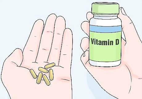 Try a Vitamin D supplement. You may be getting plenty of calcium in your diet, but your body has difficulty absorbing it due to a Vitamin D deficiency. You may need a Vitamin-D boost if you spend less than 15 minutes outside in the sun each day. People who live above 40 degrees latitude also may not get enough Vitamin D from the sun. This includes anyone who lives north of San Francisco or Beijing, as well as anyone who lives south of Buenos Aires or Wellington. You can get Vitamin D from eggs as well as dairy products and fortified milk. If you're taking a Vitamin D supplement, aim to consume somewhere between 1,000 and 2,000 international units (IUs) a day.