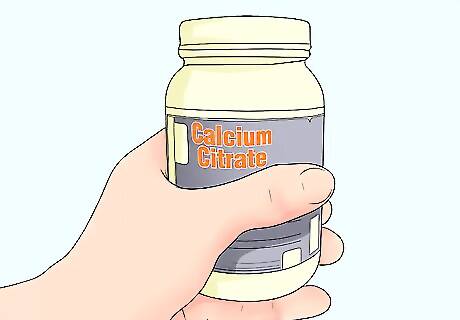 Look for calcium citrate. There are several different types of calcium supplements available. Of these, calcium citrate is the one most easily absorbed by the body. Calcium harvested from oyster shells may contain heavy metal contaminants which can be harmful to your body. You also should avoid calcium carbonate. Studies have shown little to no additional calcium was absorbed from calcium carbonate supplements. Calcium phosphate is only slightly better, with approximately one-third of the calcium absorbed from these supplements. To avoid damaging contaminants, make sure any supplements you take have been purified. In the U.S., you can look for supplements with the U.S. Pharmacopeia (USP) symbol, which indicates they meet high purification standards.