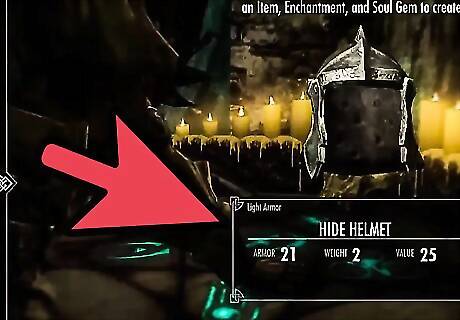 Select an item. Scroll through your inventory of enchanted weapons and armor, and select one. Remember, disenchanting armor will not give you a new enchantment for weapons, only for armor. Make sure to pay attention to the magic that is applied to each weapon, and if necessary review the enchantments you already know.