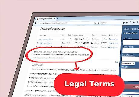 Specify important legal terms of the rental agreement. Most importantly, note whether you're looking for a month-to-month, one-year, or other type of lease. Additionally, be sure to mention any occupancy limits, as well as any rules about people staying in the property without being on the lease. Check the laws in your city and state, as some ordinances either require or disallow certain occupancy regulations. Are pets allowed? This is another important piece of information to include, along with any rules regarding pets if they are allowed.