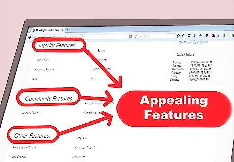 Note the ballpark location. Let prospective tenants know of the specific area in which the property is located. However, so not include the full street address in public listings. Instead, note the neighborhood, the nearest intersection of well-known streets, or information about what prominent destinations are nearby.