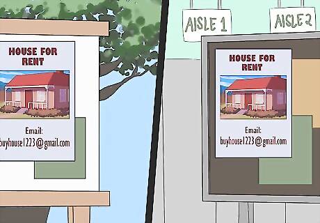 Post a listing in the neighborhood. Look for public bulletin boards in the area. Grocery stores, cafés, and entertainment venues are great places to check. A single-page print out with a photo, and tear off strips with your contact information will likely catch the attention of interested folks that are already living in the area and looking for a new abode. Choose locations to post based on the income bracket you're targeting. For instance, the high-end yoga studio down the street is likely a good spot to advertise for high-rent properties.
