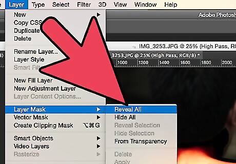 Add a layer mask. For a natural look, you will need to reduce the visibility of bumps on the darker skin-toned sides of the skin. To simulate this effect, add a layer mask by going to Layer > Layer Mask > Reveal All.