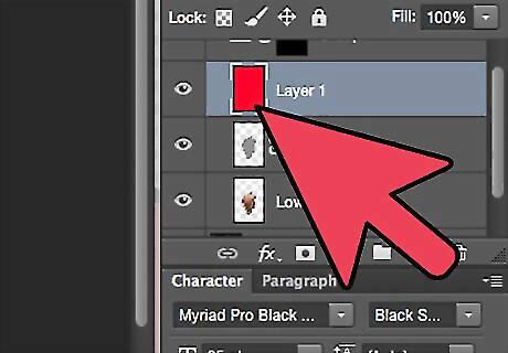 Fill this with the color red. Change the opacity of the layer to 50%.