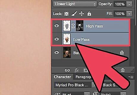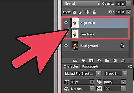Rename the top layer “High Pass.” Also rename the middle layer “Low Pass.”