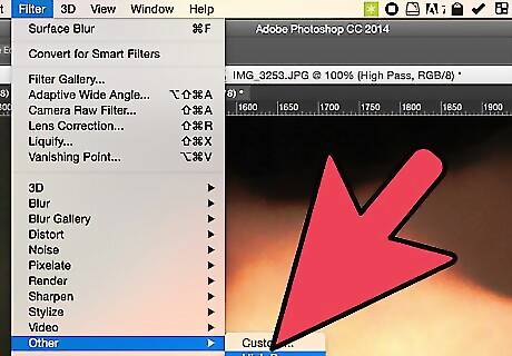 Zoom in to 100% somewhere close to the skin. Select "High Pass" filter. You can find this option by expanding the "Filter" menu then "Other."