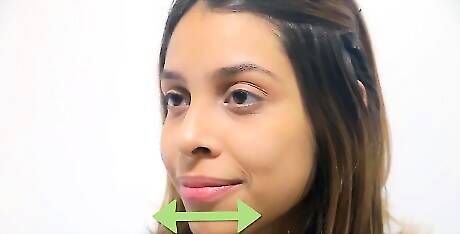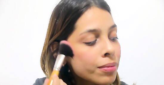 Use angular strokes to slim a round face. If you have a round face, slight slimming is key. Apply blush at the apples of the cheeks. Then, draw an angle moving to the temples. Blend the line out as you move into your temples.