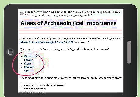 Protect areas of archaeological importance. If your project is in one of the five designated areas of archaeological importance in England, you will need to provide at least six weeks’ advance notice to your local authority before you begin work, whether or not your project needs planning permission. The authority will then inspect your site and let you know if you can proceed.