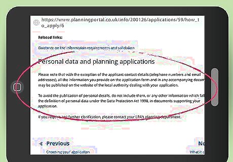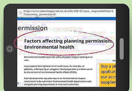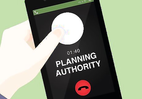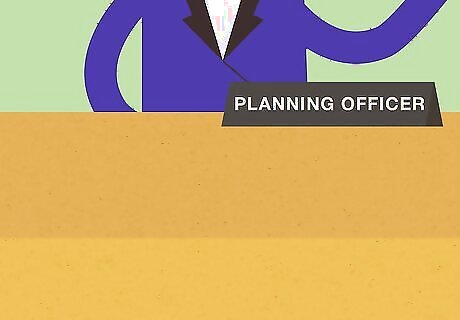 Meet with a planning officer. Before you submit your application, you should meet with a planning official to discuss your project. The planning officer can help identify points of concern that you will need to address and can let you know which local authorities you will need to speak with to get additional permissions. The planning officer can help you understand the application and review process. For your meeting with the planning officer, be prepared with the following materials and information: plans and drawings of your project an explanation of the reason for your project and its overall purpose information about the location of your project, in proximity to any roads, highways, landmarks, telephone or sewer lines