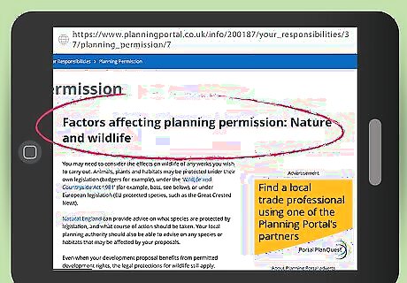 Consider the effects on wildlife. Part of the review of your project will include the effect that it will have on local wildlife. Anything you can do to minimize impact will increase your chances of approval. Natural England, the governmental agency on wildlife preservation, can help answer any questions you may have before you begin.