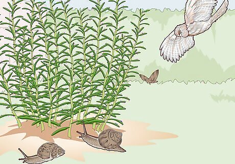 Let pests like snails and moths into your yard for them to eat. The tawny frogmouth’s diet consists mostly of insects. They eat snails, moths, worms, and even cockroaches to survive. Instead of deterring pests with peppermint spray or lemongrass, consider allowing these insects to live in your yard to provide a meal for the tawny frogmouth. If you have a garden, deterring pests may be an integral part of your lawn care. Consider having one area of your lawn where pests are deterred and another area that they are allowed to roam freely.