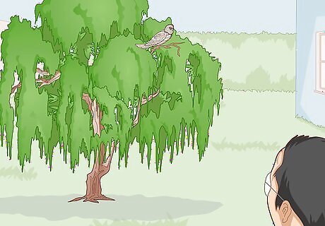 Keep mature trees in your yard to provide a roosting area. Tawny frogmouths love to roost in mature trees that provide them with enough shelter and camouflage. These trees usually include gum trees like pine, oak, and maple, but tawny frogmouths will roost in other trees if they need to. Leave large, mature trees in your yard to provide shelter for these birds and plant new gum trees if you can. Tawny frogmouths will avoid your yard if it is free of trees because there is nowhere for them to hide.