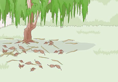 Leave yard debris like twigs and leaves for them to make a nest with. Tawny frogmouths use twigs and green leaves to create their nests in trees. Instead of raking up yard debris and disposing of it, consider leaving your yard scraps spread around for these birds to use.Tip: Sometimes tawny frogmouths will take the abandoned nests of other birds. If you see an empty nest in one of your trees, leave it there for a frogmouth to use later.