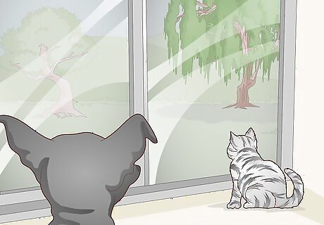 Keep cats and dogs indoors at night so the bird won't feel threatened. Since tawny frogmouths hunt at night, they are in danger of being hurt or killed by your domesticated animals as it gets dark. Even if your pet is docile, tawny frogmouths can still be spooked by their presence. Try to keep your animals inside or on a leash as night falls. Even if your pets wear bells on their collars, they can still hunt and attack tawny frogmouths. It is best to keep your animals inside at night.