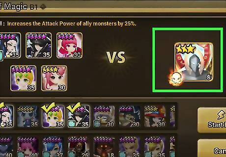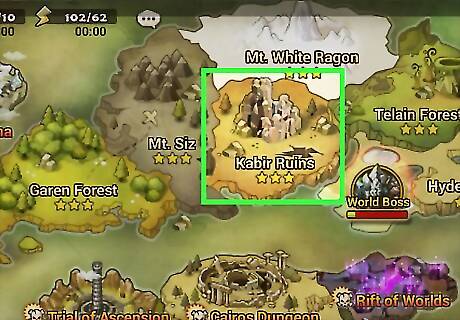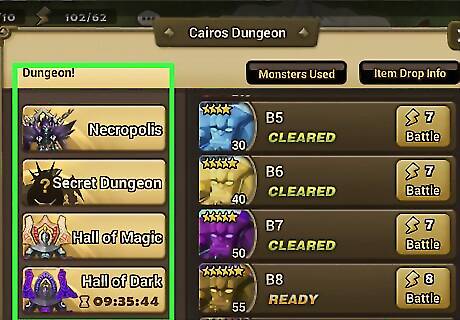 Tap. When you find the dungeon that you want to go through, tap on the icon for it once. This will bring the preparation screen, where you can prepare your team, look at the boss's stats, or even bring a friend's rep with you.