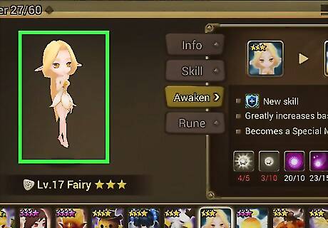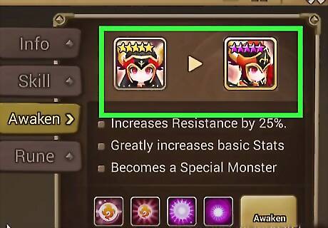 Pick a monster to awaken. Make sure that the monster you have chosen isn't already awakened (where the stars by their name will be purple) or their stars are silver, which means that they can't be awakened. These silver-star monsters are mostly just used for power-up material.
