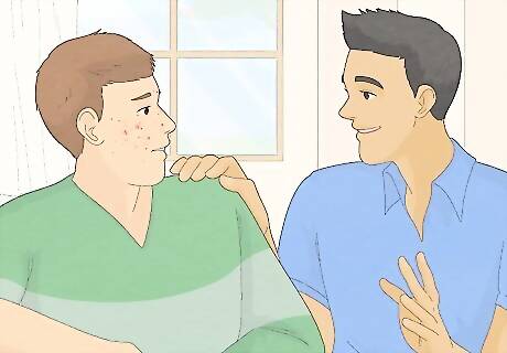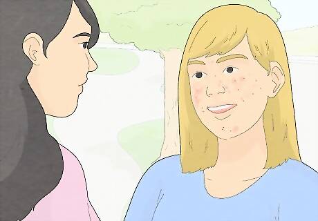 Avoid withdrawing. It can be easy to withdraw from social situations when you have acne. You may feel as though everyone notices your acne or that they are judging you for it. Withdrawing will not help your acne, nor will it make you feel better about your appearance. No matter what, make an effort to socialize. Doing so will help you feel better in the long run. When speaking to someone, you might feel as though you have to look away so that they do not see your face. Instead, look them straight in the eye. This will help you build confidence, and may also make them think twice about poking fun at you.