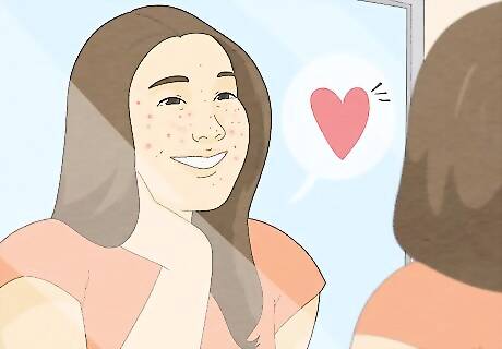 Focus on your beauty and goodness. Everyone has minor imperfections, but they also all have good features. Instead of focusing on your acne or scars, think about what makes you beautiful. Write a list of what you find beautiful about yourself. Some ideas include: "I have pretty eyes." "I have a beautiful smile." "I have nice hair." "I am very strong."