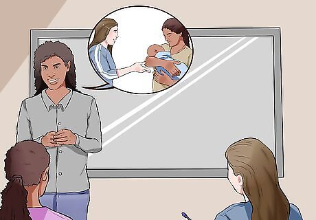 Familiarize yourself with the role of a birth doula. If you want to be a birth doula, you will assist during the actual process of childbirth. There are different types of birth doulas who specialize in different types of pregnancy and labor. Birth doulas support the woman during the last few weeks of pregnancy, as well as during the labor process. Your goal as a doula is to make pregnancy a positive and empowering experience for women. In addition to medical knowledge, you need to have good people skills as you'll be helping women and their families manage the stress of childbirth. An antepartum doula specifically works with high risk pregnancies. Often, women are confined to their beds during these pregnancies, so you will be caring for women in the weeks leading up to child birth. Some birth doulas work specifically with adoptive parents and birth mothers. In addition to delivering the baby, you will help birth parents and adoptive parents mange the emotions associated with adoption.