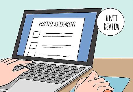 Try the practice assessment at the end of each unit. Once you've covered all of the information in a single unit, you can select "Unit Review." This is a short quiz that will ask you a few multiple-choice questions or have you respond to real-life scenarios. The assessments will help you gauge whether or not you'll be ready to take the formal exam after you've finished all the units.