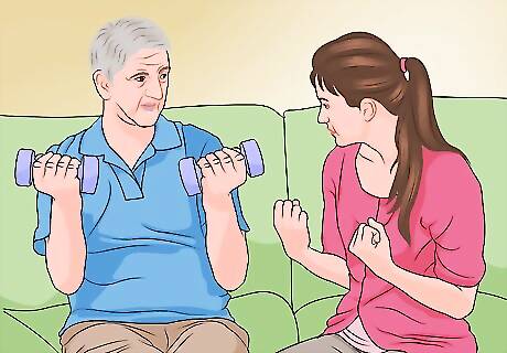 Discuss health issues with older people. You might visit with people in the community over age 60 who live at home. During your visit, you'll assess any health issues they might need to address and you can refer them to services that are available. You might also ensure that the person has an adequate environment, including heating, cooling, food, and appropriate clothing, as well as assess their ability to care for themselves. For example, you might remind someone that free or low-cost flu vaccinations are available at a clinic in the community. You might work alongside other caregivers when visiting with older people. If the person needs assistance to live on their own, they might be primarily cared for by a relative or professional caregiver.