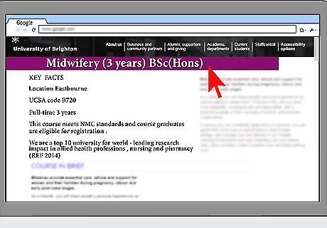Consider becoming a midwife. You can sometimes fulfill the health visitor requirement of becoming a trained nurse by becoming a midwife. Some schools that offer medical degrees offer degrees in midwifery. You can enroll in a midwifery training program if you have at least five A through C GCSEs. If you have three A-Levels, you can immediately apply for a midwifery degree. Most midwifery degrees in the UK take 3 years to complete (if doing it full-time). Midwifery degrees in Scotland take 4 years to complete.