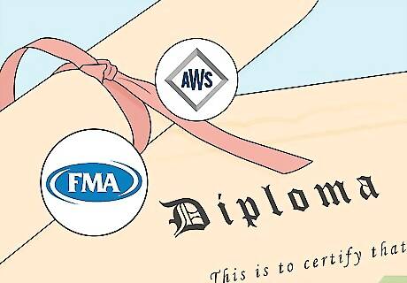 Get professional certifications related to your work. Sheet metal workers generally don’t have to get a license, but certifications can open up new job opportunities. For example, some people earn a certification for precision sheet metal work. Also, look into welding, BIM, testing and balancing, and similar duties. These certifications are given out by professional organizations and you can apply for them online. For example, check out The Fabricators & Manufacturer’s Association for precision work certificates. If you’re in the U.S., apply to the American Welding Society for welding certificates. Certification rules may vary depending on where you live. For more information, consult government regulations.