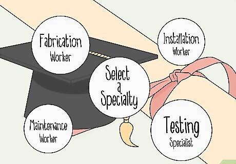 Select a specialty depending on what you want to make. Sheet metal work can be divided up into 4 specialties. Fabrication workers are the most common and make household products in a factory. Installation workers install those products and often work on construction sites. Maintenance workers are responsible for fixing up old or worn-out products. Testing specialists make sure products are working correctly and often double as installation and maintenance specialists. If you prefer working in a factory, for instance, fabrication is the best choice. If you don’t mind doing things like installing ducts in new buildings, then installation or maintenance may be right for you. Although most specialists work in factories, some of them work outdoors and may need to deal with the tough conditions of a construction site. Search for different apprenticeships and jobs depending on what you want to do. If you intend on doing installation work, look for opportunities with construction or heating and cooling companies, for instance.